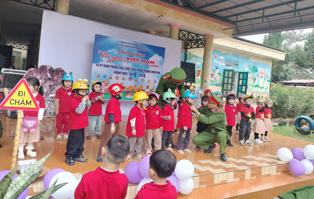 Sáng 16/12, Trường Mầm non Đồng Lương phối hợp với Công an xã Đồng Lương tổ chức Chương trình “Tôi yêu Việt Nam” kết hợp tuyên truyền kiến thức an toàn giao thông và kỹ năng phòng cháy chữa cháy cho trẻ mầm non năm học 2025 – 2026.