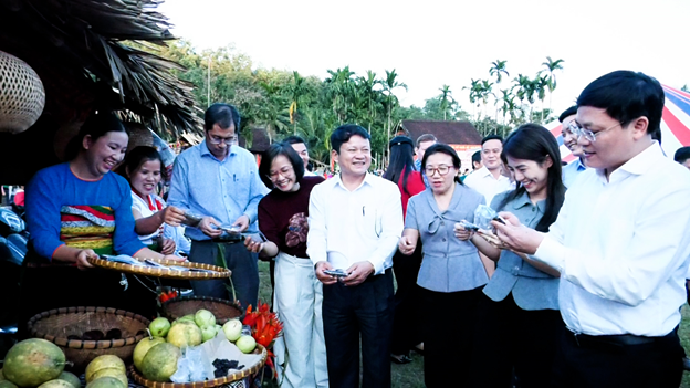 Các gian trưng bày mang đến sắc màu đa dạng, từ các sản phẩm OCOP đặc trưng đến nông sản, rau củ quả và những mặt hàng truyền thống được bà con chăm chút chuẩn bị. Không chỉ là nơi giới thiệu thành quả lao động, từng gian hàng còn trở thành không gian giao lưu ấm áp, nơi người dân kể cho nhau nghe những câu chuyện quanh mùa màng, kỹ thuật sản xuất hay bí quyết giữ gìn hương vị đặc trưng của núi rừng. Lãnh đạo tỉnh và địa phương dành nhiều lời khen ngợi cho chất lượng sản phẩm cũng như tinh thần tự lực, đoàn kết trong phát triển kinh tế của thôn.