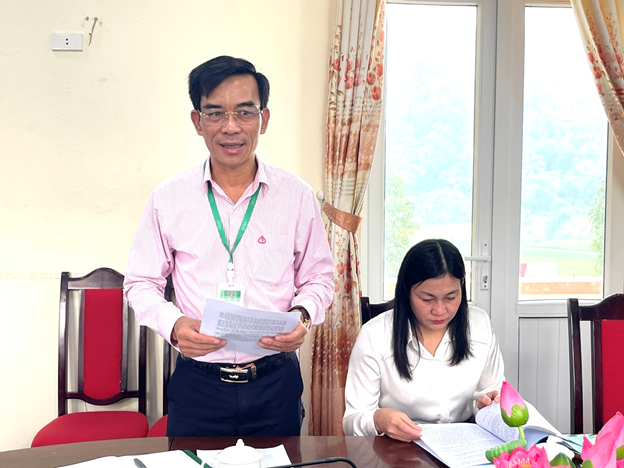 Giám đốc Phòng giao dịch Ngân hàng Chính sách xã hội Lang Chánh thông qua báo cáo thực hiện nhiệm vụ Quý I, triển khai nhiệm vụ Quý II/2026