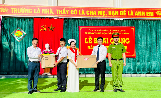 Trong không khí hân hoan ngày hội khai trường, Trường trung học cơ sở Đồng Lương vinh dự đón đồng chí Hoàng Văn Thanh – Bí thư Đảng ủy, Chủ tịch hội đồng nhân dân xã; đồng chí Bùi Huy Hoàng – Ủy viên Ban Thường vụ, Trưởng Công an xã; cùng đại diện các ban, ngành đoàn thể và Hội Cha mẹ học sinh.