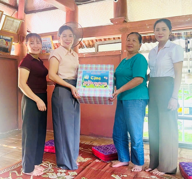 Đồng chí Vi Thị Kim Hằng – Phó Chủ tịch HĐND xã trao quà Trung thu của Thường trực HĐND xã cho điểm trường Mầm non khu Thung, gồm 46 suất quà dành cho các cháu có hoàn cảnh đặc biệt khó khăn và 35 suất quà cho học sinh Mầm non, Tiểu học tại điểm trường khu lẻ thôn Thung.