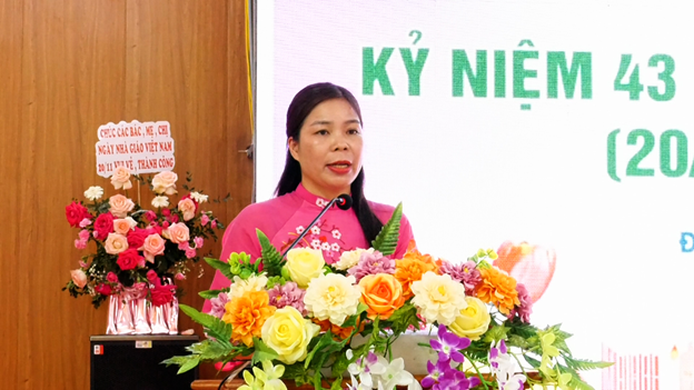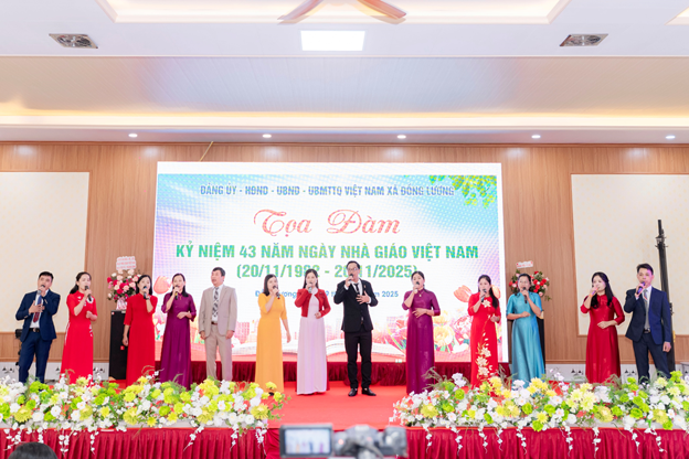 Phát biểu chúc mừng, đồng chí Hoàng Văn Thanh – Bí thư Đảng ủy, Chủ tịch HĐND xã trân trọng ghi nhận và biểu dương những đóng góp to lớn của đội ngũ nhà giáo xã Đồng Lương. Đồng chí đề nghị ngành giáo dục địa phương tiếp tục quán triệt và thực hiện nghiêm túc các chủ trương, nghị quyết về đổi mới căn bản, toàn diện giáo dục; đẩy mạnh chuyển đổi số trong dạy học và quản trị trường học; bồi dưỡng năng lực số cho giáo viên; xây dựng đội ngũ nhà giáo, cán bộ quản lý thực sự gương mẫu, tận tâm, chuyên nghiệp, đáp ứng yêu cầu phát triển trong giai đoạn mới.